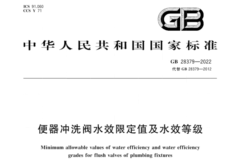据市场监管总局、标准委公告,GB 28379-2022《便器冲洗阀水效限定值及水效等级》国家标准将于2023年7月1日起实施,届时将替代现行的GB 28379-2012《便器冲洗阀用水效率限定值及用水效率等级》国家标准。