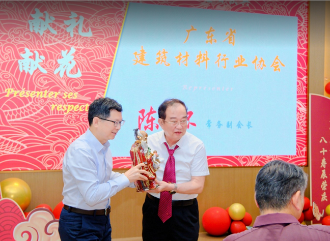 省建材协会常务副会长陈环向文梓芸教授赠礼:如意寿星