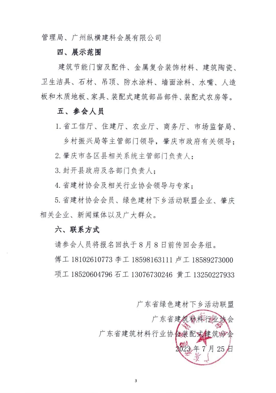 2023年8月18日,由我协会主办的“2023年全国绿色建材下乡活动(广东·封开站)暨肇庆市装配式建筑与绿色建材产业发展大会”在肇庆封开举行,助力美丽乡村建设,实现绿色建材进万家,助推地方产业绿色转型升级。广东省绿色建材下乡活动联盟成员及协会装配式建筑会员单位可免费参展,有意向企业请尽早报名参加。