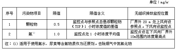 表3 大气污染物无组织排放限值