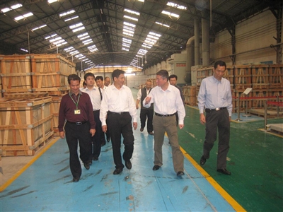 乔龙德会长在萧华董事长的陪同下参加蒙娜丽莎陶瓷生产车间