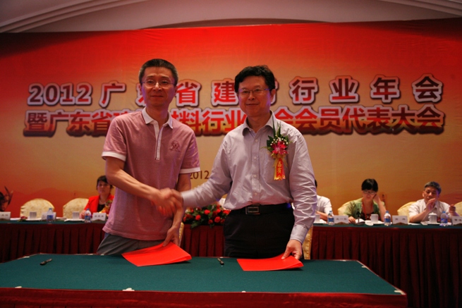 随后,会议举行了广东省建筑材料行业协会与《中国建材报》战略合作签约仪式,中国建材报社副社长孙凯文和广东建筑材料协会副会长兼秘书长陈环分别代表双方在合作协议上签字,标志双方的合作上升到了一个新的高度,双方将整合资源,共同推进广东建材行业发展。
