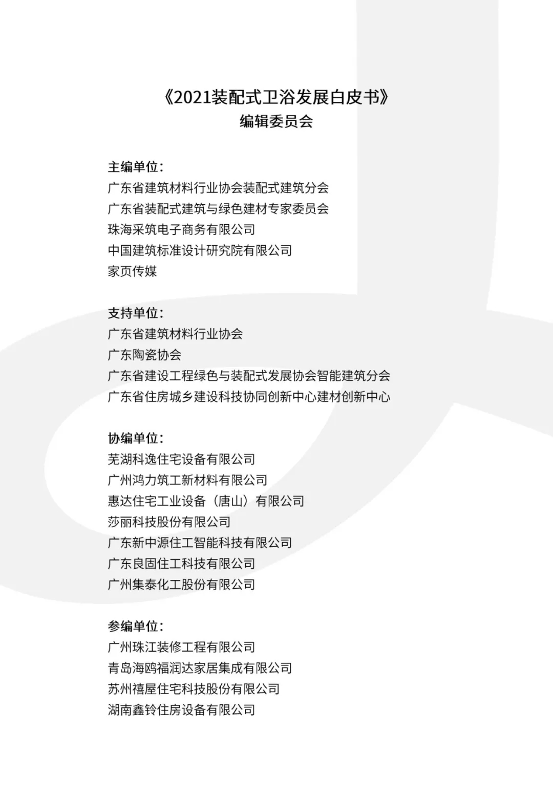 由广东省建筑材料行业协会装配式建筑分会、采筑、中国标准院、家页传媒联合主编和25家业内主流企业勠力编制的《2021装配式卫浴发展白皮书》于2021年8月4日在广州顺利发布。