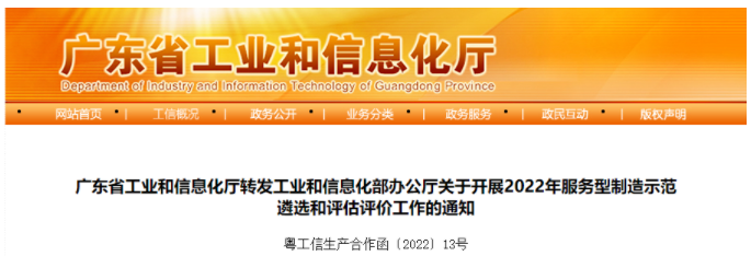 1.工业和信息化部办公厅关于开展2022年服务型制造示范遴选和评估评价工作的通知