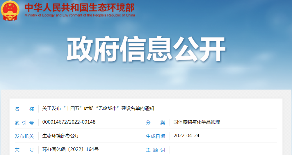 日前,生态环境部公布“十四五”时期“无废城市”建设名单,《通知》提出,生态环境部会同有关部门,根据各省份推荐情况,综合考虑城市基础条件、工作积极性和国家相关重大战略安排等因素,确定了“十四五”时期开展“无废城市”建设的城市名单,我省9个城市入选:广州市、深圳市、珠海市、佛山市、惠州市、东莞市、中山市、江门市、肇庆市。