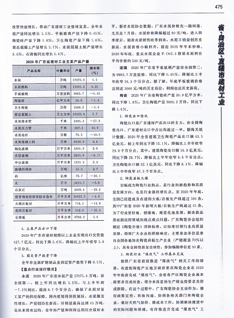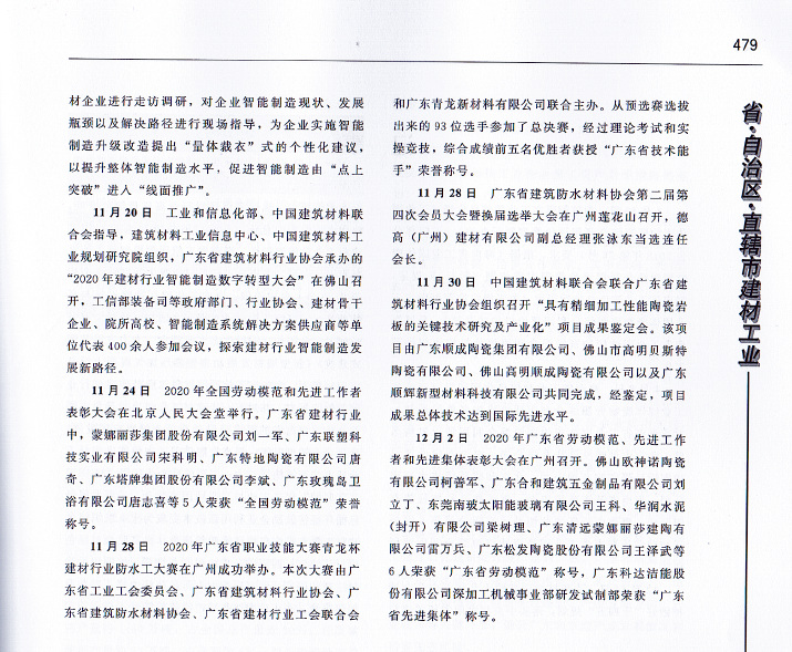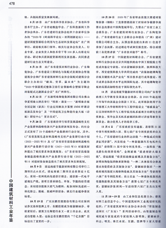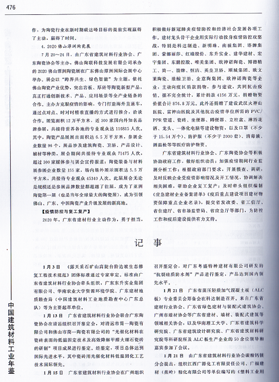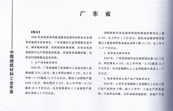 2021版《中国建筑材料工业年鉴》新鲜出炉啦!由我协会组织编撰的“广东省建材工业”部分,如实反映广东建材发展情况和改革成就,从建材领域为讲好广东故事、树立广东形象不懈努力,在为政府部门提供决策参考及为社会各界提供权威资讯等方面发挥了重要作用。