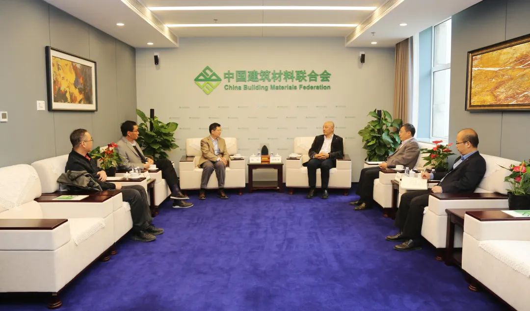 4月23日,我协会常务副会长陈环、创会会长吴一岳一行到中国建筑材料联合会拜访阎晓峰会长。联合会常务副会长陈国庆、秘书长贺军,协会秘书长陈振广参加会面。