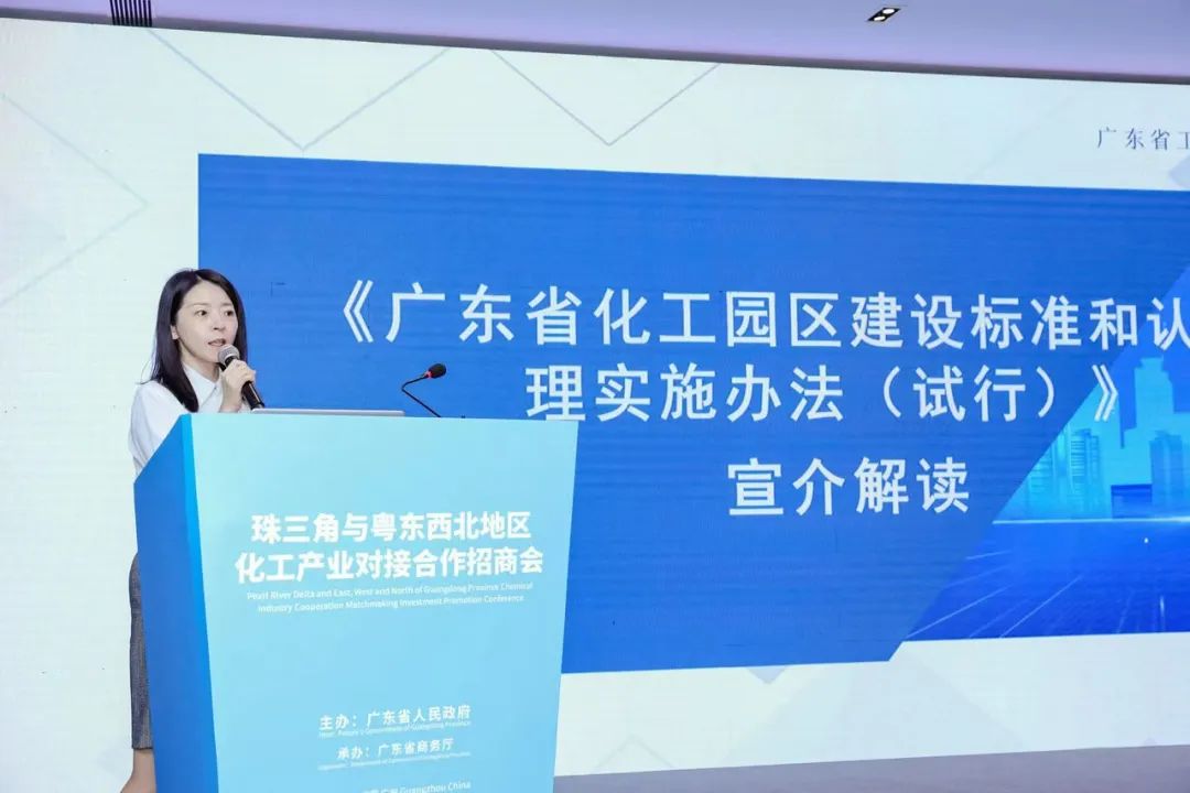 下午举行了产业对接平行活动,为企业和商协会及园区提供产业对接及交流平台,优质高效地激活发展动能。广东省工业园区协会协办化工产业及园区专场,企业、协会及园区代表超150人参加,各方踊跃对接及洽谈投资合作事宜。省商务厅二级巡视员李敬致辞,省工业和信息化厅材料处副处长谭艾婷解读《广东省化工园区建设标准和认定管理实施办法(试行)》。