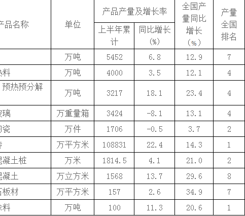 今年上半年,广东省建材行业主要产品产量总体保持增长,居全国前列,但增长有所减缓;除陶瓷砖外,增幅均低于全国平均水平,见表1所示。