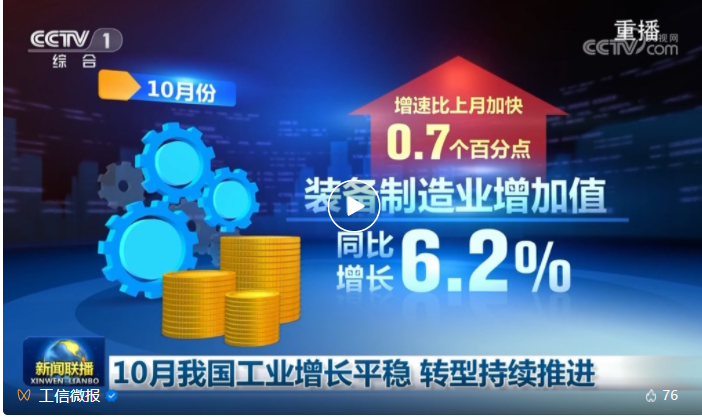 最新公布的工业数据显示,10月份,多数行业和产品增速回升,制造业高端化、智能化、绿色化扎实推进,新动能加快成长壮大,工业经济呈现持续回升向好态势。