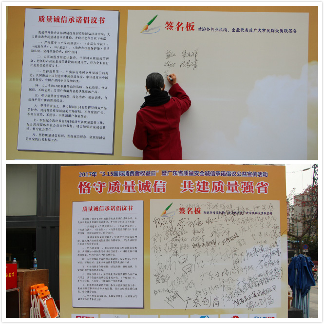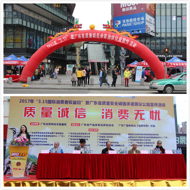 3月15日,主题为“质量诚信·消费无忧”的“2017年315国际消费者权益日暨广东省质量安全诚信承诺倡议公益宣传活动”在广州海珠区万科里广场隆重举行。我会积极参与此次公益宣传活动。