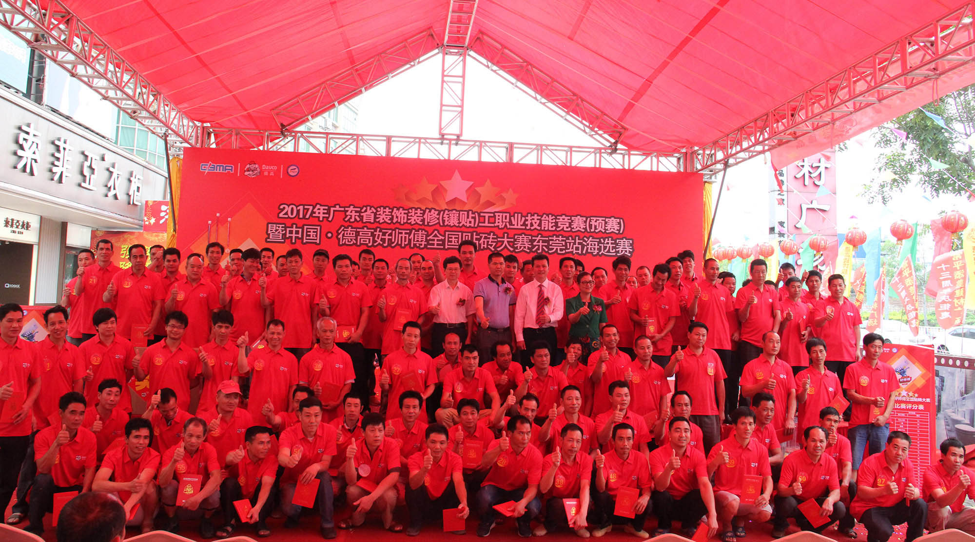 “广东省装饰装修(镶贴)工职业技能竞赛暨中国·德高好师傅全国贴砖大赛”是经广东省人力资源和社会保障厅统一部署(粤人社函〔2017〕1269号)的省级赛事,由广东省建筑材料行业协会、广东陶瓷协会、广东省工业工会委员会、广东省建材行业工会联合会和德高(广州)建材有限公司联合主办,旨在通过竞赛的形式,让装饰装修(镶贴)师傅们掌握更加规范化和专业化的工艺,提升镶贴工的技术水平,提高施工质量和施工效率,保障施工质量。