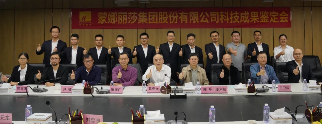 11月13日,我协会与中国建筑材料联合会联合组织鉴定会,对蒙娜丽莎集团完成的“干粒抛金属闪光效果岩板的研发及产业化”项目和“一次烧珍珠灰闪光肌理效果产品研究与开发”项目进行鉴定。