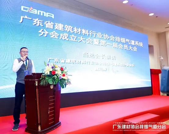 1月5日下午,广东省建筑材料行业协会排烟气道系统分会成立大会暨第一届会员大会在广州白云国际会议中心举行。广东省建材行业协会创会会长、首席专家吴一岳,广东省建材行业协会顾问、原广东省工信厅调研员梁荣英,广东省建材行业协会秘书长陈振广,分会筹备组组长、广州市洁达建筑装饰工程有限公司技术总经理魏廷锋,以及排烟气道行业相关领导、专家、企事业单位负责人和会员单位代表等100多人出席大会。