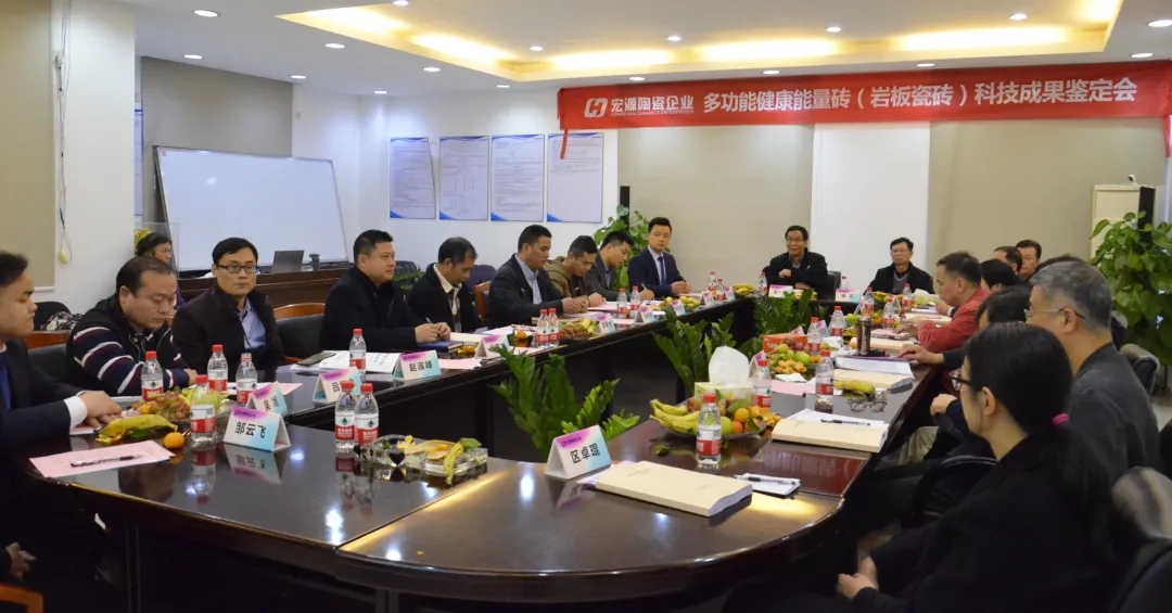 11日下午,广东省建筑材料行业协会联合广东陶瓷协会在佛山共同组织新产品新技术鉴定会,对佛山市三水宏源陶瓷企业有限公司研发的“多功能健康能量砖(岩板瓷砖)”进行鉴定。
