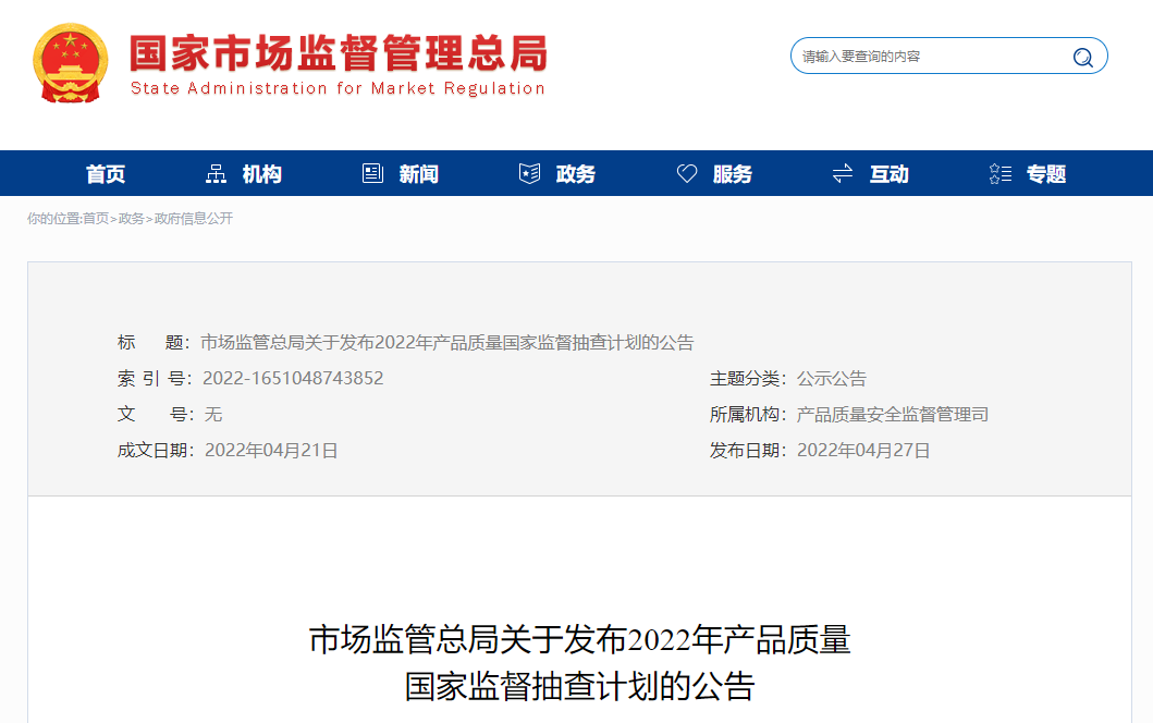国家市场监管总局表示,将按照抽查计划认真组织开展产品质量国家监督抽查,及时公布抽查结果,依法查处产品质量违法违规行为。在按计划开展国家监督抽查的同时,市场监管总局也将根据实际情况,酌情调整抽查内容,组织对计划外的产品开展专项监督抽查。