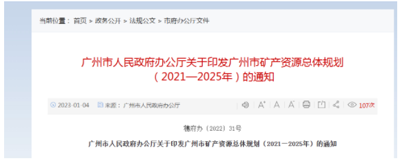近日,广州市人民政府办公厅发布关于印发广州市矿产资源总体规划(2021—2025年)的通知。
